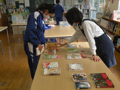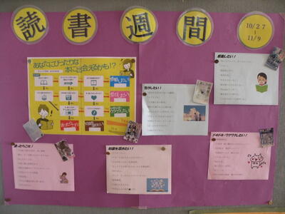 2021年10月18日 13時10分昼休み時間等、図書室を利用している生徒が多く見られます。図書館内はもちろんのこと、廊下の掲示物も充実しており、とても利用しやすいです。これも週2回、お出でいただいている学校司書の先生のお陰です。読書の秋、大いに活用したくさんの良い本を読んでください。