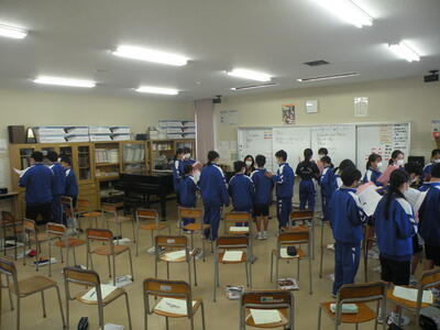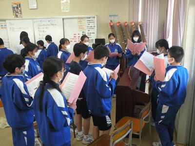 2021年10月18日 16時30分コロナ感染者数も減ってきたこともあり、以前にも増して感染対策を万全にし、音楽の授業で合唱練習が始まりました。久しぶりに校舎内に生徒の歌声が聞こえ、とても安心感がありました。また、普通の生活が一番であると改めて感じることができました。