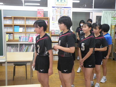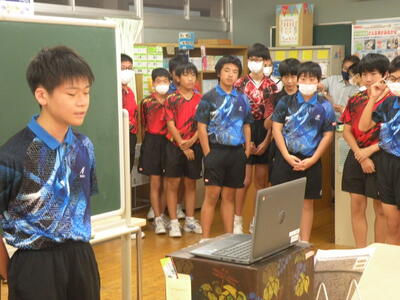 2021年9月24日 17時55分リモート形式での選手壮行会を行いました。各部より決意表明・選手紹介があり、各教室でその様子を見ている生徒たちからは、どの部にも大きな拍手が送られました。全校生徒の願いを胸に頑張ってください。