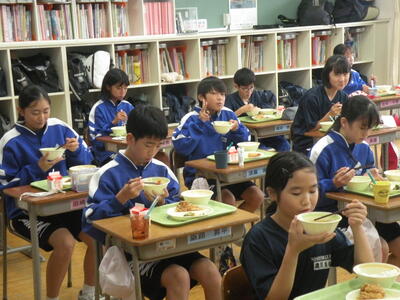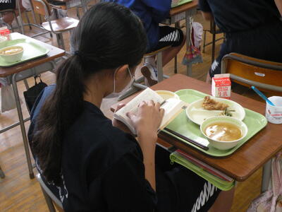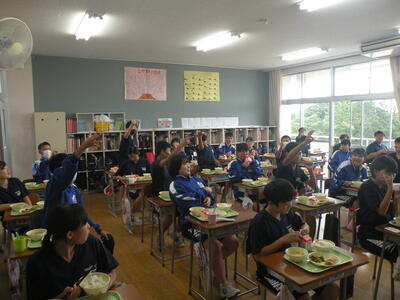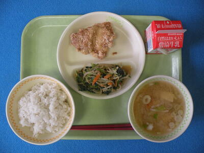 2021年9月27日 12時30分今日のメニューは、麦ごはん・からあげ・ほうれん草ともやしのごま和え・大根と豆腐のみそ汁・牛乳でした。明日からいよいよ新人戦です。どの部もみんな頑張りましょう!今日は1年生の教室を訪問しました。※明日から3日間は「愛情たっぷり弁当の日」となりますので、よろしくお願いいたします。