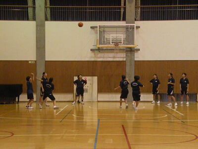 2021年9月27日 17時35分女子バスケ部の練習を見学させていただきました。さすが駅伝メンバーが6人もいるので持久力は抜群です。新人戦は粘り強い試合が期待できます。部長を中心にすばらしいチームプレーで、一戦一戦を大事に戦ってほしいと思います。