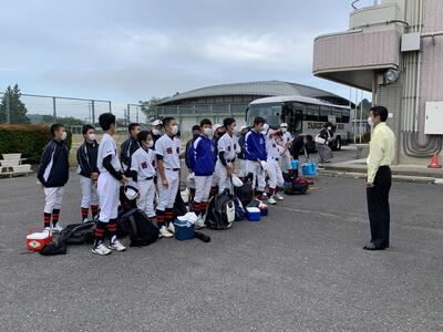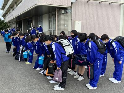 2021年9月28日 07時27分本日の新人戦に向けて、6:50にバレー部が、7:10に野球部とソフトテニス部が出発しました。あいにくの曇り空ですが、その天気を吹き飛ばすようなプレイを期待しています。西中生、Fight!!