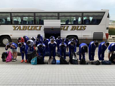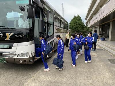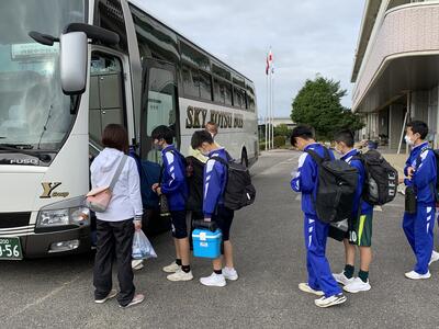 2021年9月28日 08時36分本日の新人戦に向けて、8:30にサッカー部が学校を出発しました。いつも元気いっぱいのサッカー部。試合でもフィールドを縦横無尽に駆け巡る動きを期待しています!!