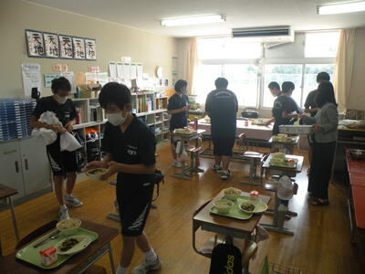 2021年9月24日 12時30分今日のメニューは、そぼろごはん・三色おひたし・油揚げとじゃがいものみそ汁・牛乳でした。食欲の秋、この季節でなければ味わえないものがたくさんありますね。今日は3年生の教室を訪問しました。今日もみんな元気でいい笑顔をしてました。