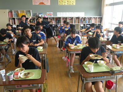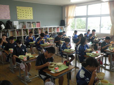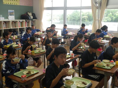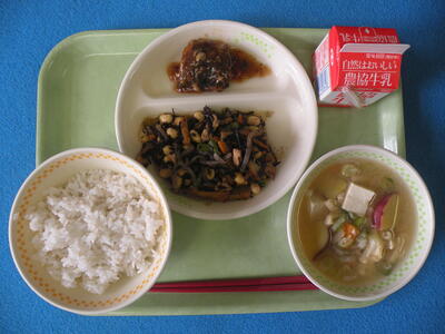 2021年9月17日 12時55分今日のメニューは、麦ごはん・さつま汁・さばのおかか照り煮・ひじきの炒り煮・牛乳でした。今日もたいへんに美味しくいただきました。今日は1年生の教室を訪問しました。みんなの元気な顔を見るのが一番の栄養ですね。※9月22日(水)、28日(火)~30日(木)は「愛情たっぷり弁当の日」です。ご準備をよろしくお願いいたします。