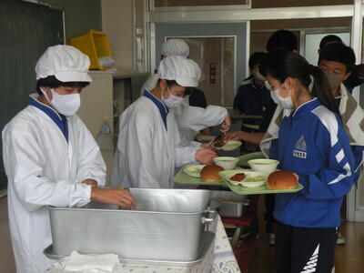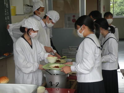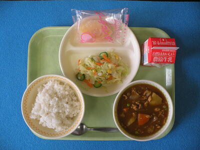 2021年9月15日 12時30分今日のメニューは、麦ごはん・ポークカレー・コールスローサラダ・桃のコンポート・牛乳でした。今日の食材は福島・須賀川産のものです。特にこの西袋地区の果物はたいへんに美味しいです。今の季節は梨とぶどうですかね。今日は所用により生徒の写真はありません。※明日は「愛情たっぷり弁当」の日です。よろしくお願いいたします。