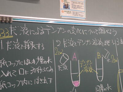 2021年9月14日 13時00分2年2組の理科の授業では「だ液のデンプンの変化について調べよう。」の実験でした。各グループで役割分担し、手際よく進めることができました。実験の結果はさて、予想していたことと一致しましたか?