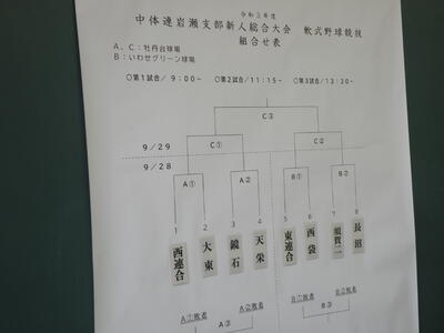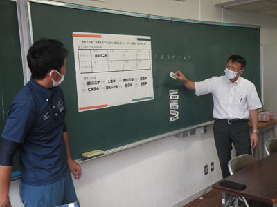2021年9月14日 18時10分本日、本校において中体連新人戦の組み合わせ抽選会が行われ対戦校・対戦相手が決まりました。コロナの影響により、練習試合ができないままに大会を迎えることになりますが、まずは大会が開催されることへの喜びと感謝の気持ちを忘れないでください。コロナ感染はもちろんのこと、けがや病気をせず、ベストな状態で大会を迎えてください。