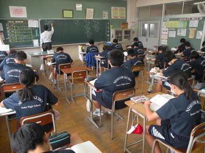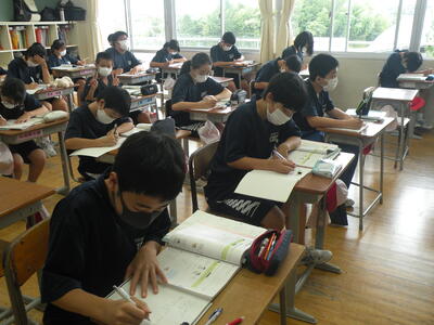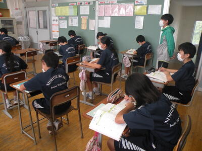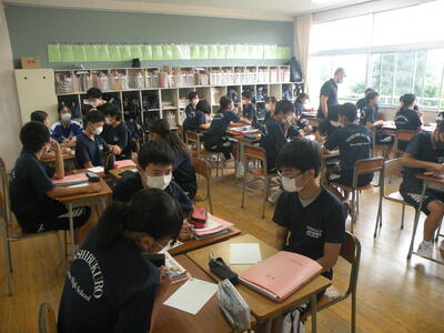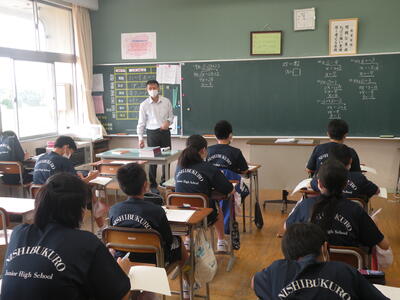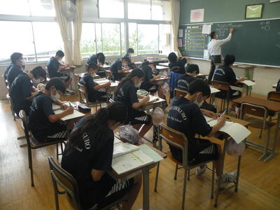 2021年9月16日 12時10分1年生では方程式の解き方について学習しています。まずは教科担任の先生の説明がとても分かりやすく、生徒たちも理解できていたようです。また、TT方式での授業のため、一人ひとりの生徒への個別の指導が行き届いていました。分からないところは積極的に質問してくださいね!