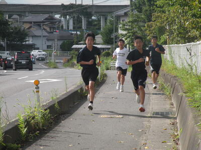 2021年8月17日 08時10分今日からお盆明けの部活動練習が再開されました。特設駅伝部男子チームも練習に力が入っています。久しぶりの再会とあり、嬉しそうな様子も見られました。少しずつペースを上げ、ベストな状態で大会(9/2)を迎えてください。顧問の先生も気合いが入っていました!
