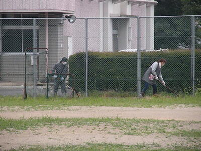 2021年8月12日 08時35分早朝の6時より約1時間半にわたり、PTA本部役員4名の皆様と校長・教頭で校庭を中心に除草作業を行いました。お陰様できれいにはなりましたが、まだまだ敷地内が広いため作業箇所は多くあります。今後も計画的に進めていく予定です。お盆前のお忙しい中、早朝よりありがとうございました。