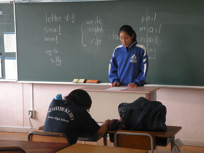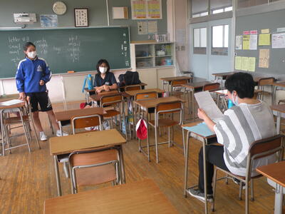 2021年8月3日 11時30分8月27日(金)に開催されます英語弁論大会に向けて、3年生女子生徒2名が頑張っています。英語科やALTの先生のご指導をいただきながら、発音等に注意して練習を重ねています。実際に聴講させていただき、とても上手なことに驚きを感じました。本番に向けて頑張ってください。