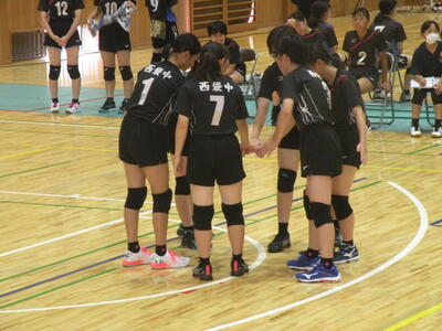 2021年8月7日 11時05分今日と明日、須賀川三中体育館で開催されます。1日目は7校による予選リーグを、明日は決勝トーナメントとなります。コロナ感染対策を十分に行い大会が開催されています。2日間共、無観客での開催となりますので、よろしくお願いいたします。1、2年生の新チーム、とても元気があり上手なプレーが数多く見られました。まとまりのあるいいチームです!