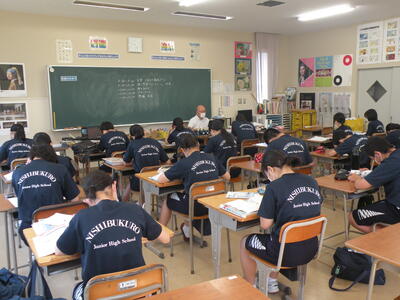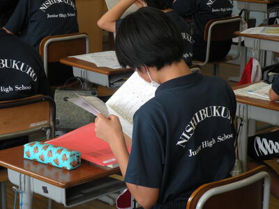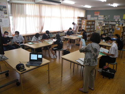 2021年7月21日 10時35分8月27日(金)に開催されます英語弁論大会に向けて、3年生の教室では英語科の先生による指導が始まりました。女子生徒2名に対してマンツーマンによる指導です。西中の代表として堂々と発表してください。暑い中たいへんですが、中学校時代の最高の思い出にもなりますので、頑張ってくださいね!