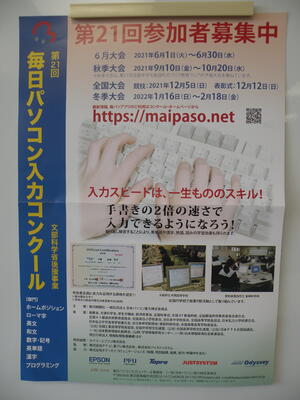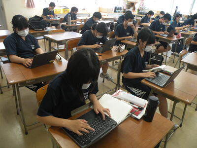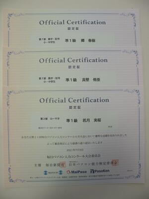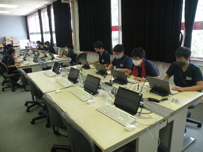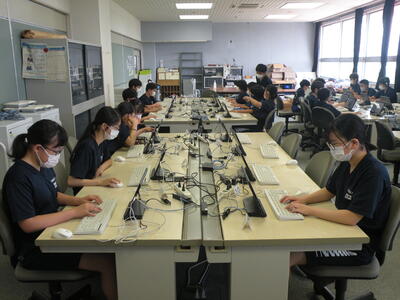 2021年7月21日 11時00分AI部では「パソコン入力コンクール」で、準1級が3名・2級が5名・準2級が3名とたいへんにすばらしい成績でした。みんなそれぞれに目標を持って取り組んでおり、静かな中にも活気が感じられました。次の目標に向かって更なる努力を期待しています。頑張れ!!