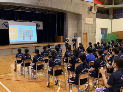 2021年6月29日 17時25分池田記念病院の管理栄養士の先生とトレーナーの先生を講師にお迎えし「成長期に必要な食事と免疫機能を高める食事及びストレッチ」について理解することができました。生徒たちは終始真剣な眼差しでお話を聞くことができ、とても興味関心が高いものと思いました。今後の生活にうまく活用してくださいね!