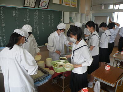 2021年6月30日 12時45分今日のメニューは、麦ごはん・さばのみそ煮・キャベツの浅漬け・すまし汁・牛乳でした。さばのみそ煮は味が浸みていてとても美味しかったです。今日は3年生の教室を訪問しました。男子は元気いっぱい・女子はおしとやかな感じを受けました。どのクラスもとてもいい雰囲気でした。