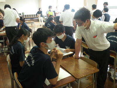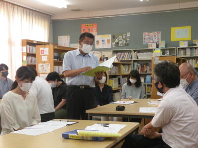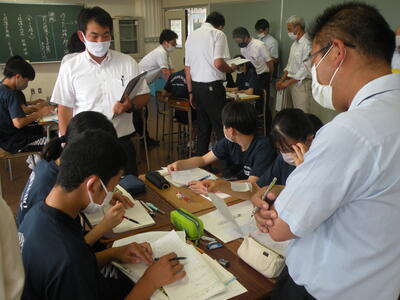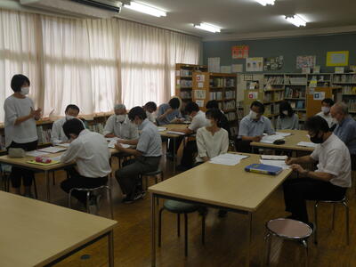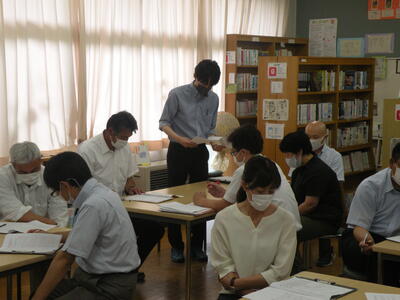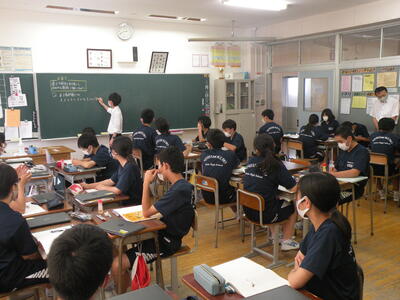 2021年7月1日 16時30分授業後の事後研究会です。参観された先生方より生徒の動きや様子について発表がありました。その後、学校教育アドバイザーの先生と須賀川市教育委員会の指導主事の先生よりご指導をいただきました。3年3組の生徒の皆さん、ありがとうございました。