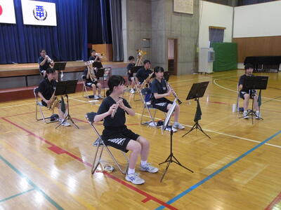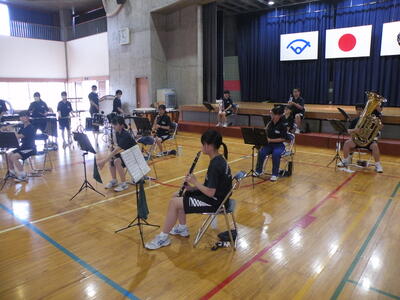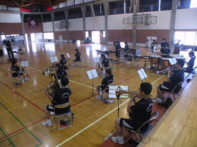 2021年7月1日 16時40分明日の本番に向けて、今日は体育館での練習です。顧問の先生を中心に各パートや全体練習とたいへんにすばらしい演奏でした。毎日の練習の成果が十分に表れていたと思いました。本番は残念ながら無観客の中での演奏となりますが、西中らしい堂々とした姿で演奏してください。校長先生は楽器の積み込み・搬入・搬出・積み降ろしでお手伝いさせていただきます。