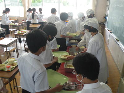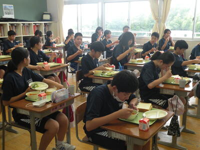 2021年6月28日 12時50分今日のメニューは、麦ごはん・チンジャオロース・中華スープ・牛乳・アセロラゼリーでした。今日は中華料理、一段と食が増しました。今日は2年生の教室を訪問しました。みんな元気なあいさつができ、食欲も旺盛でした。これからはしっかり食べて夏の暑さに負けない体づくりが大切です。