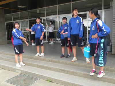 2021年6月17日 07時30分今日は個人戦、2年生女子生徒が1名出場します。保護者の方の送迎により、元気に福島空港公園テニスコートに向け出発したものと思います。朝早くからご協力いただきまして、心より感謝いたします。硬式テニスは県大会はありませんが、ぜひ上位入賞できるよう頑張ってください。