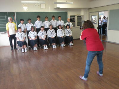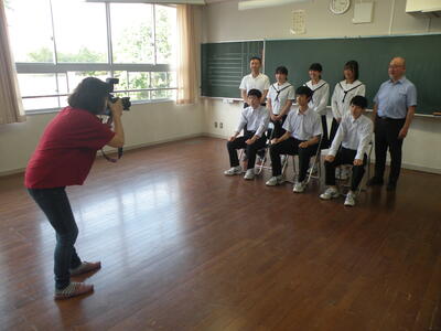 2021年6月18日 16時10分3年生の卒業アルバムの専門委員会の写真撮影がありました。写真撮影時のみマスクを外してハイポーズ!改めまして、マスクを外した生徒の顔はとても素敵でした。最近ではマスクは見慣れてきましたが、よく考えると異常な状況です。遠くから撮影しましたので、お子さまの素敵な顔はアルバムを見てください。