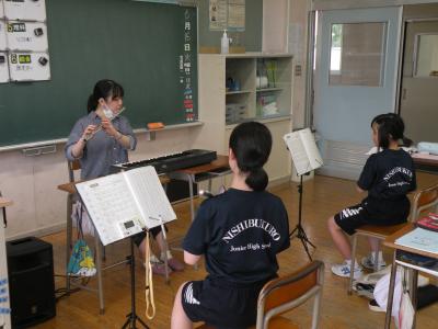 2021年6月14日 17時15分吹奏楽部の部活動練習に「広報すかがわ」(6月号)に掲載されていましたフルート奏者の方にご指導いただきました。何とこの方は私が須賀川一中に勤務していた最後の年に1年生に在籍していた生徒です。私のことを覚えていただいており、とても嬉しく感じました。当たり前ですが、フルートの音色が全く違います。すごくきれいです。生徒たちは実際に先生に間近でご指導いただき、先生のフルートの音色が聴けることはとても幸せなことです。本当にありがとうございました。