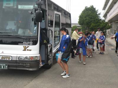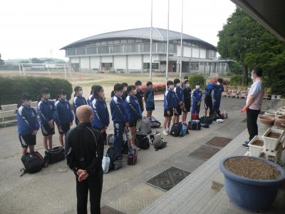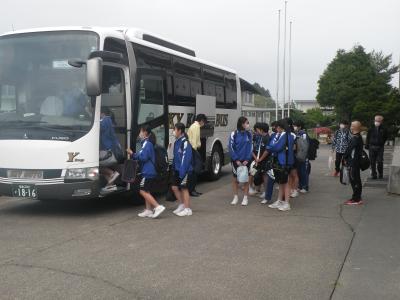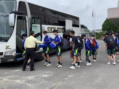 2021年6月16日 09時00分サッカー部は西部サッカー場に向けて、8時45分に出発しました。生徒たちの顔つきも引き締まり、戦闘モードに突入した様子でした。ぜひ念願の県大会出場を目指し、一戦一戦を大事にプレイしてほしいと思います。なお、個人戦出場の硬式テニスと剣道の女子生徒2名につきましては、保護者の皆様の送迎により各会場に出発します。お忙しい中、ありがとうございます。