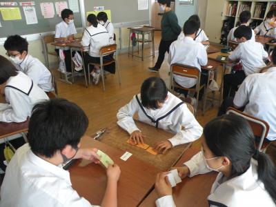 2021年6月10日 14時00分理科室を覗いたら実験を行っていました。学習内容は「化学変化の前と後での質量について」でした。まずは教科担任の先生が実験する様子をまばたきしないくらいのすごい集中力でした。実験をとおして新たな発見があったときの生徒たちの感動は表情によく表れていました。私も参観して楽しかったです。