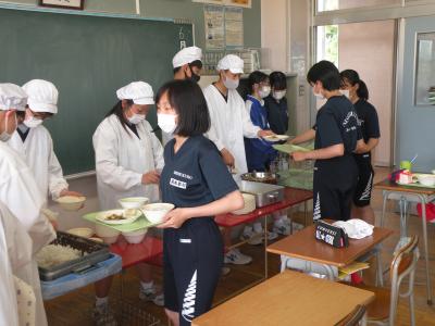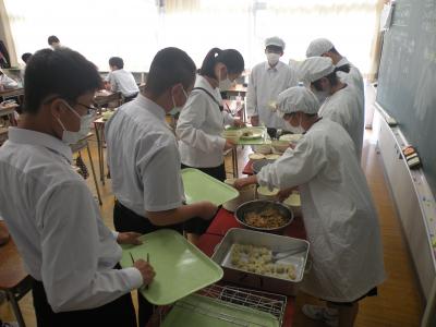 2021年6月7日 12時50分今日のメニューは、麦ごはん・ビビンバ・コーンシュウマイ・五目スープ・牛乳でした。シュウマイ・スープとトウモロコシがたくさん入っており、とても美味しかったです。今日は2年生の教室を訪問しました。順番を待っている生徒・準備が終わった生徒と読書をしている生徒が多く目につきました。時間を有効に活用していることがよく分かりました。