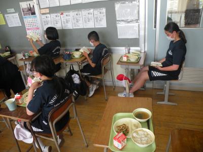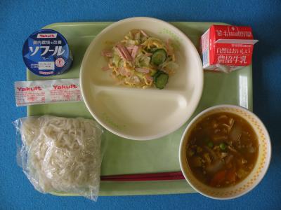 2021年6月8日 12時30分今日のメニューは、カレーうどん・春雨サラダ・牛乳・ヨーグルトでした。午後から不在のため、各学年の給食の様子は掲載できませんでした。カレーうどんはとても美味しいですが、注意すべき点はカレーの汁を白いシャツに付けないことです。勢いよくすすってはダメですね!ホームページに給食の献立コーナーを作成しました。保護者の方より、夕食のメニューと同じにならないようにと、貴重なご意見をいただきました。ありがとうございました。