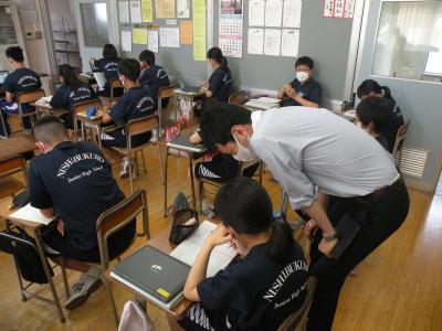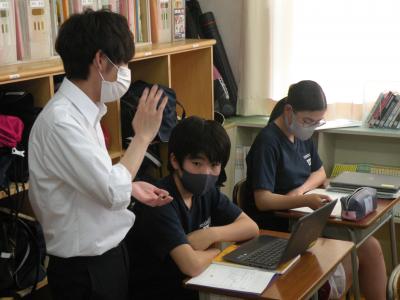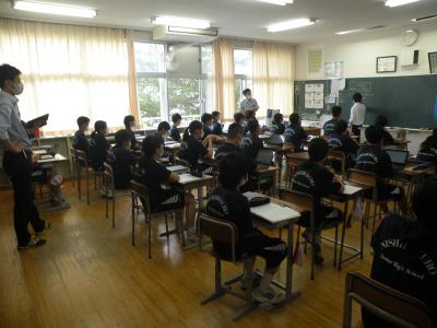 2021年6月7日 14時15分数学の授業では、市の教育研修センターの先生と県教育センターの先生に参観いただきました。方程式について、真剣に考え話し合い、正しい答えを導き出すことができました。みんな一生懸命に頑張っている姿が見られました。