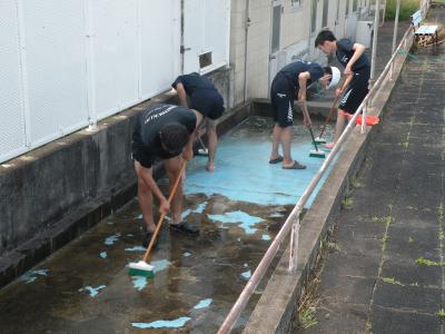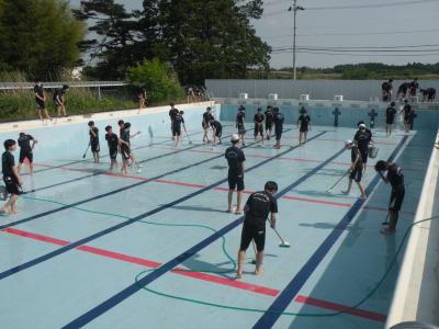 2021年6月7日 15時35分プール清掃もいよいよ最後となりました。最後は3年生男子が隅々まできれいにしてくれました。天気も良く、気温も高いことから、びしょ濡れの生徒も多く見られました。今年の夏は例年のように思い切り泳げるといいですね!そして、コロナはもうなくなってほしいです!!