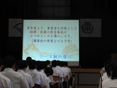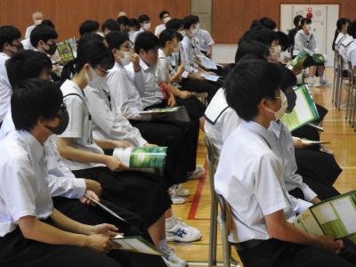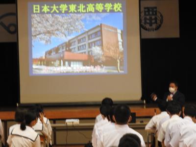 2021年6月8日 17時50分高校説明会1日目は、安積高校・清陵情報高校・須賀川桐陽高校・日大東北高校の学校説明会が行われました。参加した2、3年生の生徒は目を輝かせながら、真剣な態度でお話を聴いていました。お忙しい中、お出でいただきました各高校の校長先生・進路担当の先生方には心より感謝いたします。ありがとうございました。