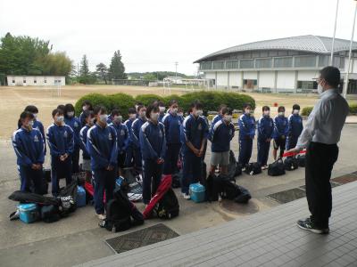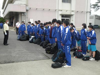 2021年6月1日 07時00分各部活動、中体連岩瀬支部総合大会に向けて各会場に出発しました。みんな元気な顔で堂々とした様子でした。朝早くから保護屋の皆様には激励の声かけや見送りに来ていただき、ありがとうございました。選手たちは持っている力を120%発揮し、全力で頑張ってくれることと思います。