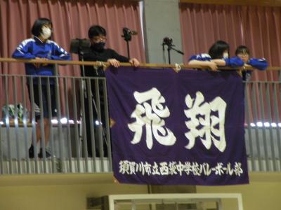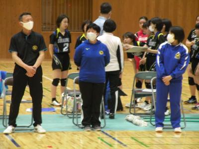 2021年6月1日 15時40分ちょうど全会場を視察しているときに、本校のバレーボールの試合が行われました。1セットの途中まで観戦させていただきました。元気いっぱい・笑顔いっぱい、会場でも大きな声で挨拶をいただきました。3年間での心の成長が感じられるすばらしいチームです。