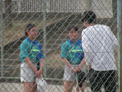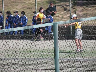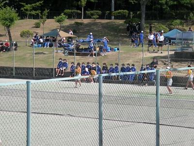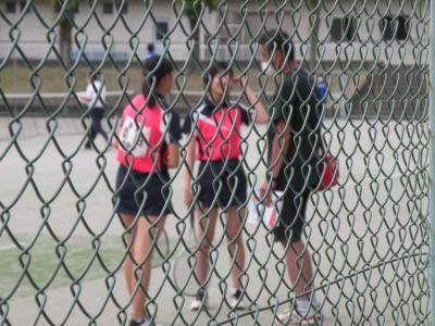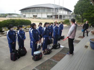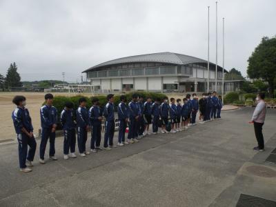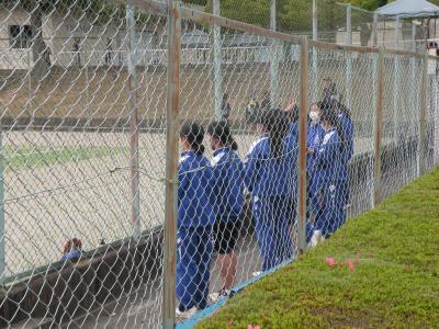 2021年6月1日 15時50分団体戦、3位決定戦直前の練習風景です。フェンスの外からの撮影であったため、あまり鮮明ではありませんが、みんな一生懸命に頑張っていました。本校生徒の良さは、どこで会っての元気に挨拶ができることです。