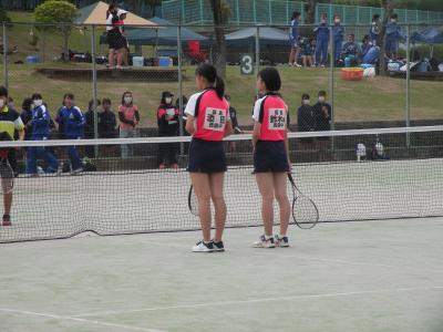 2021年6月2日 16時10分ソフトテニス部も頑張りました。女子個人戦で1ペアが準優勝に輝きました。おめでとうございます。県中大会でも更に練習を重ね、頑張ってもらいたいと思います。会場ではチームが一丸となって応援していました。今日の挨拶もすばらしかったです。