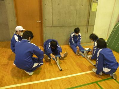 2021年5月27日 15時05分今日は体育館で新体力テストの上体起こし・立ち幅跳び・立位体前屈が行われました。男女共習でもあり、たいへんに明るく仲良く取り組んでいました。ぜひ1年生時より記録が向上できるよう、最後まであきらめずに頑張ってほしいと思います。明日は筋肉痛かも・・・?
