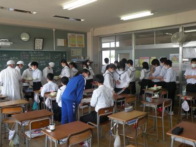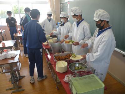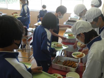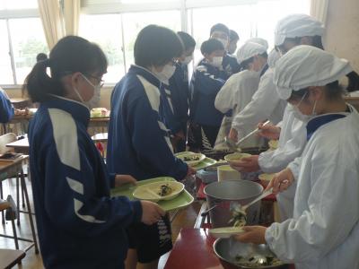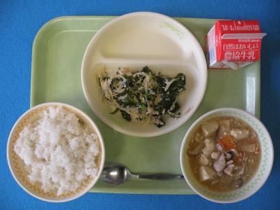 2021年5月28日 12時30分今日のメニューは、麦ごはん・家常豆腐(ジャージャンドウフ)・鶏ささみとほうれん草の和え物・牛乳でした。家常豆腐はちょっとピリ辛く、ご飯の量が増すおかずでした。とても美味しかったです。今日は2年生の教室と放送室を訪問しました。いつも元気で特にあいさつはすばらしいです。いっぱい食べてパワーアップしてくださいね!