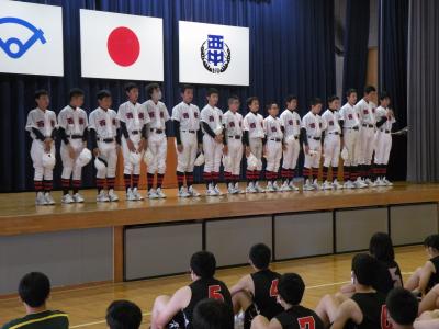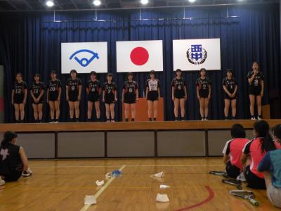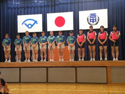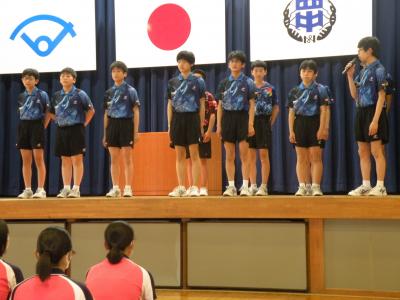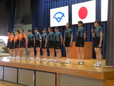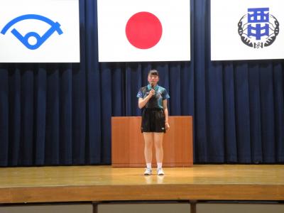 2021年5月28日 15時50分最後に応援団長より激励のことばが送られ、選手を代表して女子卓球部部長がお礼の挨拶をしました。その後、今回は応援はなしでしたが、3年生応援団の記念写真を撮りました。声を出しての大応援はできませんでしたが、全校生徒の熱い想いは選手に伝わったものと思いました。