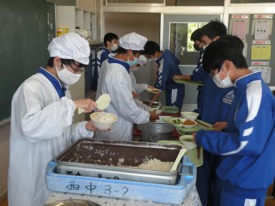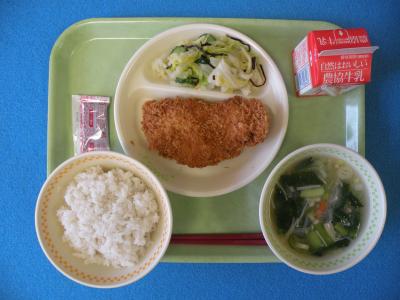 2021年5月31日 12時30分今日のメニューは、麦ごはん・チキンカツ(ソース付)・昆布とキャベツの浅漬・えのきのみそ汁・牛乳でした。チキンカツを食べて、明日からの大会は「キチンとカツ」で頑張ろう!今日は3年生の教室を訪問しました。決戦を前にみんないい顔をしていました。全校生徒が一丸となって応援しています。頑張れ!西中生!!