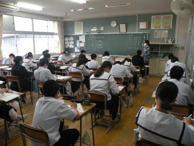 2021年5月21日 10時10分文字式について学習していました。生徒たちの様子を見て、すごい集中力であり、一人ひとりがきちんと理解できていました。教科担任の先生の説明も分かりやすく、ていねいに指導されていました。分からないところや理解できないところはそのままにぜず、先生や友だちに聞いて必ず解決させてくださいね。すばらしい授業でした。