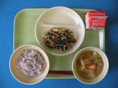 2021年5月21日 12時45分今日のメニューは、ゆかりごはん・じゃがいものそぼろ煮・ひじきの五色和え・牛乳でした。今日は所用があり各クラスには伺うことができませんでした。今日もたいへんに美味しく、とても身体が温まりました。今週も美味しい給食を作っていただき調理員の皆さん、ありがとうございました。