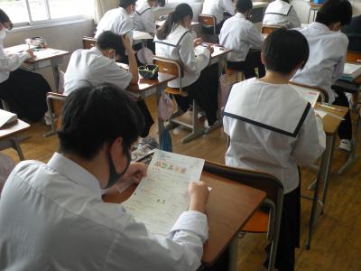 2021年5月21日 12時15分美術の時間では現在、抽象彫刻について学習しています。資料から抽象彫刻の作品を見つけ、どのようなものかを理解することができました。男女が互いに意見を交わす場面も見られ、意欲的に学習に取り組んでいました。教科担任の先生のレベルの高い授業を参観させていただきました。