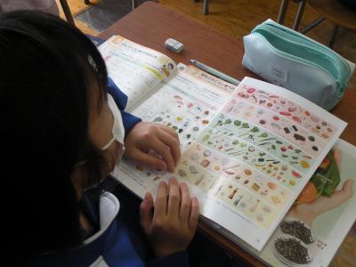 2021年5月25日 09時30分食品に含まれる栄養素について学習しました。肉や野菜、果物などをどの栄養素に含まれるかをシールを使って分ける作業を行っていました。どの生徒も真剣な態度で、間違いなく判別することができました。積極的に発言する生徒が多く、授業がとても楽しそうでした。