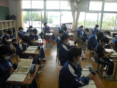2021年5月24日 12時15分3年2組の国語の授業では四字熟語について学習していました。さすが3年生です。男女共に授業への集中力がすばらしかったです。近くの席の友だちと話し合いながら一生懸命に取り組んでいました。「あっ、そうか」「聞いたことある」などの声が多く聞かれ、授業全体がたいへんに盛り上がっていました。