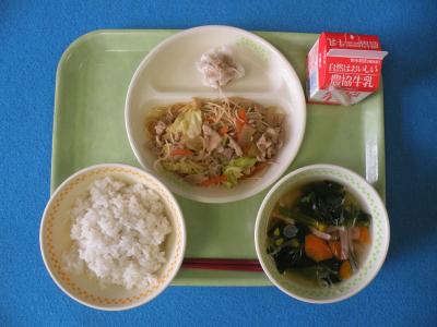 2021年5月17日 13時00分今日のメニューは、麦ごはん・ポークシューマイ・ビーフン炒め・五目スープ・牛乳でした。今日は少し肌寒いので、とても体が温まりました。3年生教室等を訪問しました。今週もみんな元気そうでした。体調管理に気をつけ、楽しい学校生活を送ってください。今週も頑張りましょう!