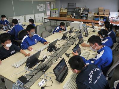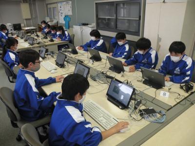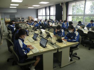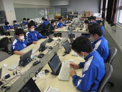 2021年5月17日 16時50分約30名の生徒たちがタイピングやプログラミングの練習をしていました。それぞれの生徒が目標を持って取り組んでおり、高いレベルでの内容となっています。ある3年生女子生徒は検定試験にも挑戦したいと話していました。頑張って!!