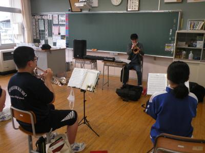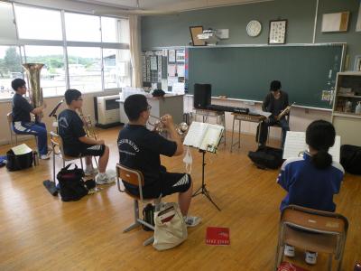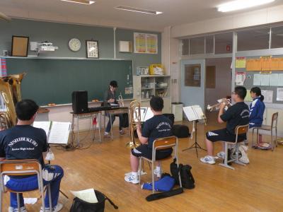 2021年5月17日 18時00分金管楽器の生徒を対象に、専門の講師の先生よりご指導いただきました。まずは講師の先生のトランペット等の吹く音が全く違うことが一番最初の印象でした。しかし、アドバイスいただくと生徒たちの音も見違えるように変わっていくことにも驚きを感じました。多くのことが習得できたものと思います。ありがとうございました。